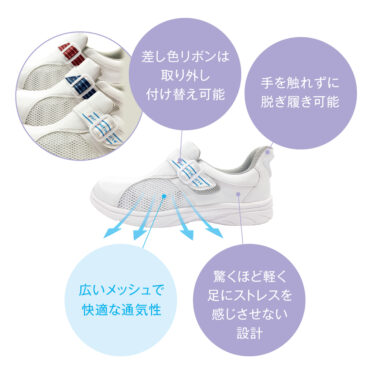ナースコール、急患、突発的な処置など… 日勤・夜勤で1日何度も脱ぎ履きする環境でも 素早く対応できます。
